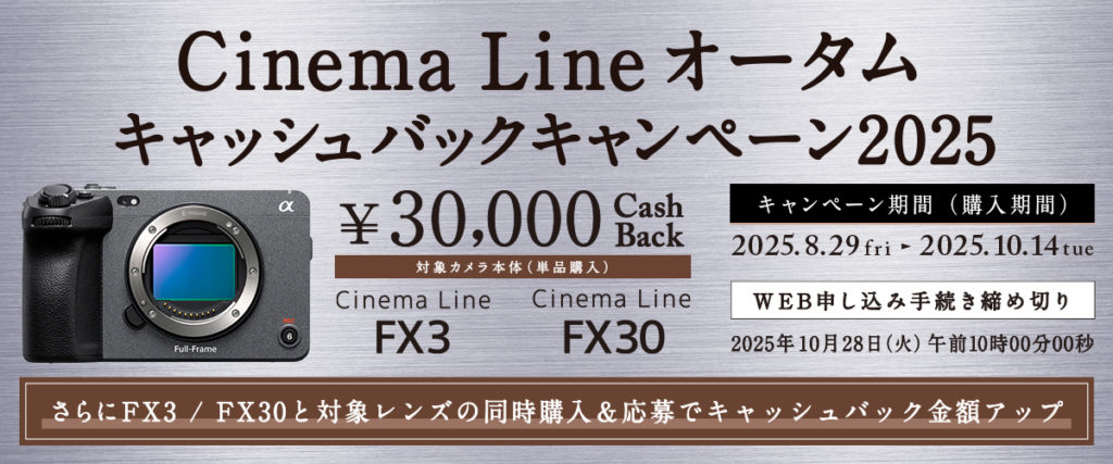 ソニーは、「Cinema Line オータムキャッシュバックキャンペーン2025」を8月29日に開始します!