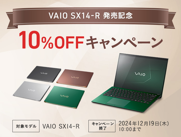 新発売を記念してVAIO SX14-Rを10%OFFでご購入いただけるキャンペーンも開始されています!お見逃しなく。