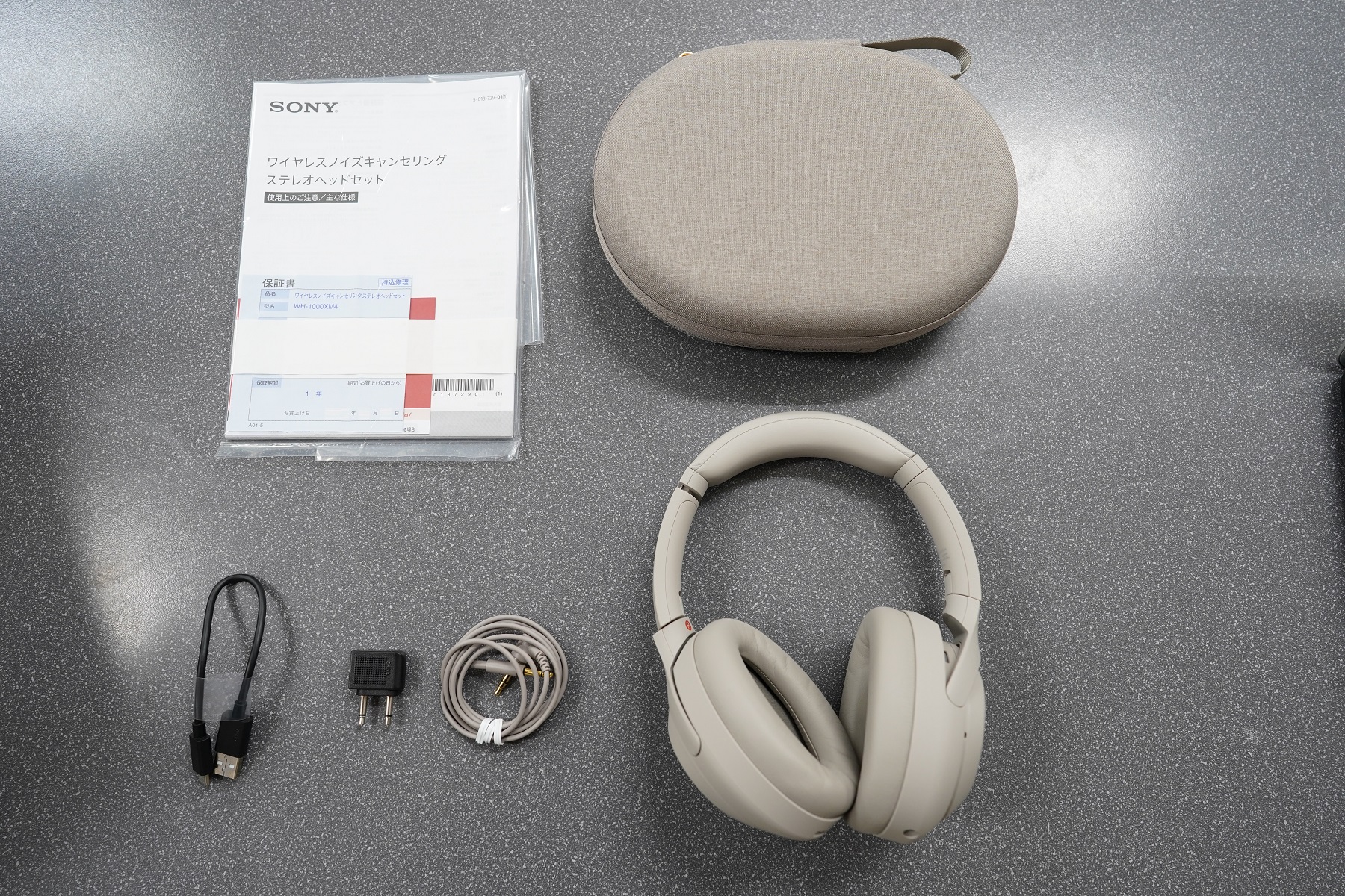 付属品は、USB Type-Cケーブル(約20 cm)、ヘッドホンケーブル(約1.2 m)、キャリングケース、航空機用プラグアダプターです。